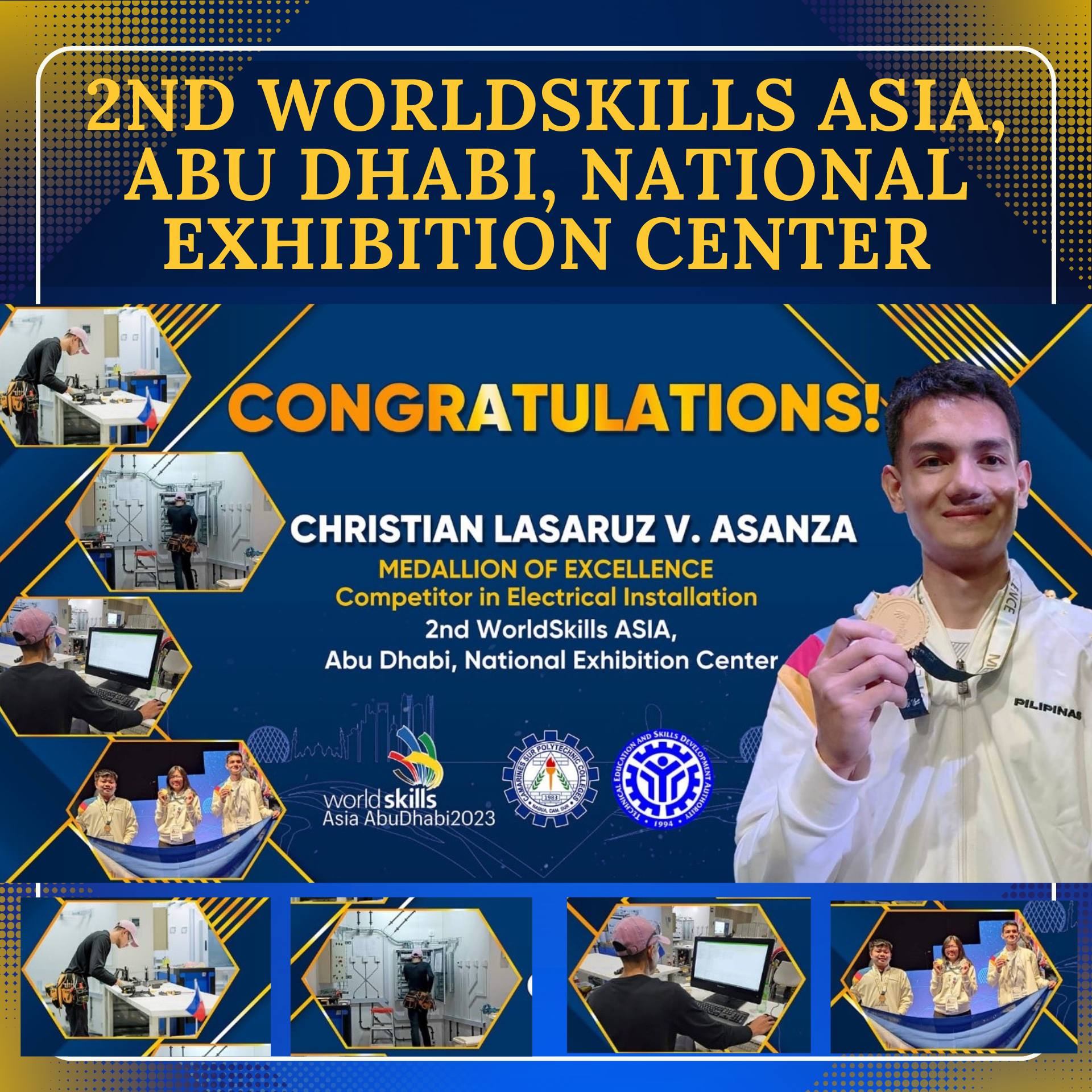 Congratulations to Team Philippines’ Cristian Lasaruz Asanza (Electrical Installation) and Jose Darylle Tolentino (IT Network System Administration) for bringing home Medallions for Excellence in the recently concluded 2nd WorldSkills Asia Competition in Abu Dhabi. The Medallion for Excellence is granted to competitors whose performance meets the international standards based on the criteria set by WorldSkills...Read More