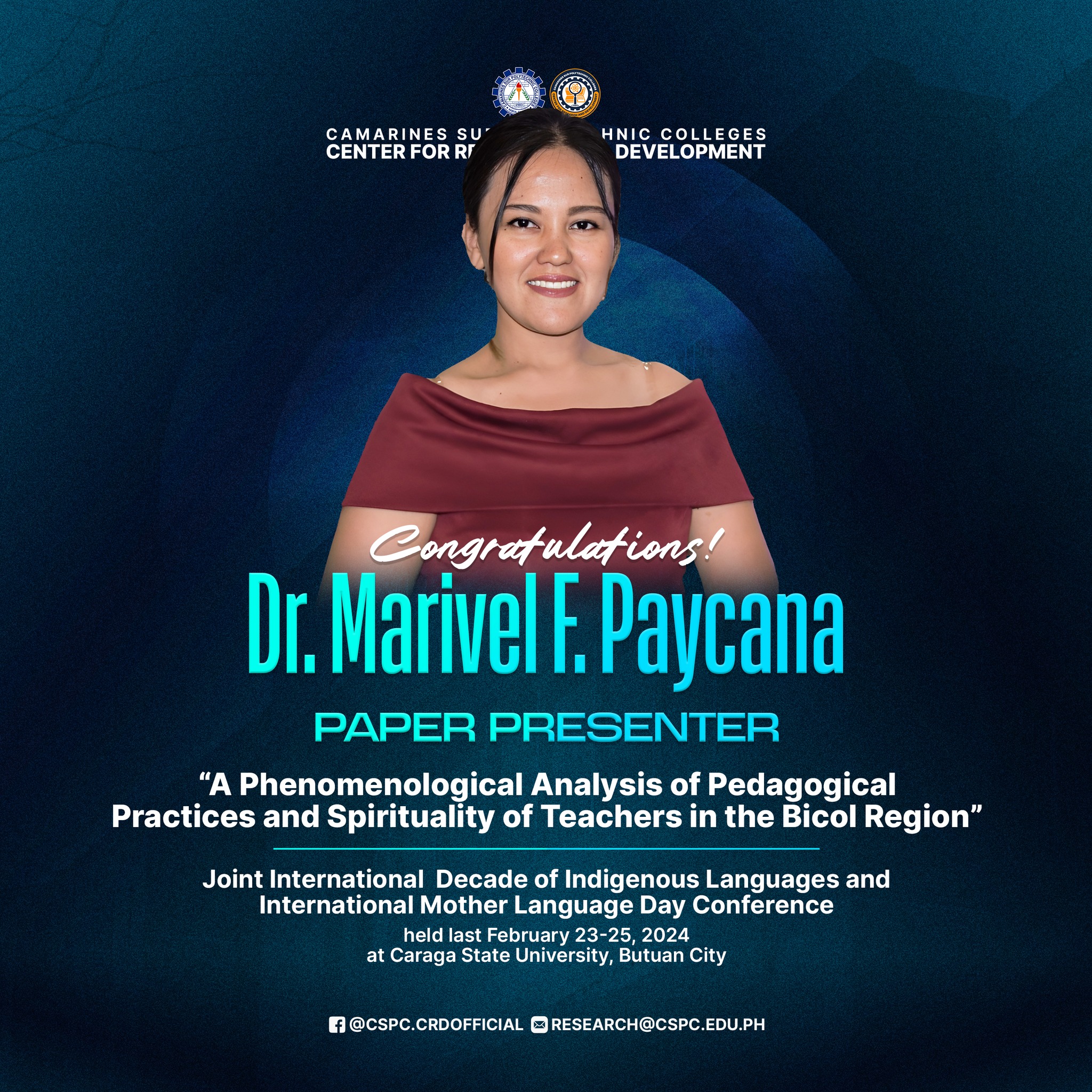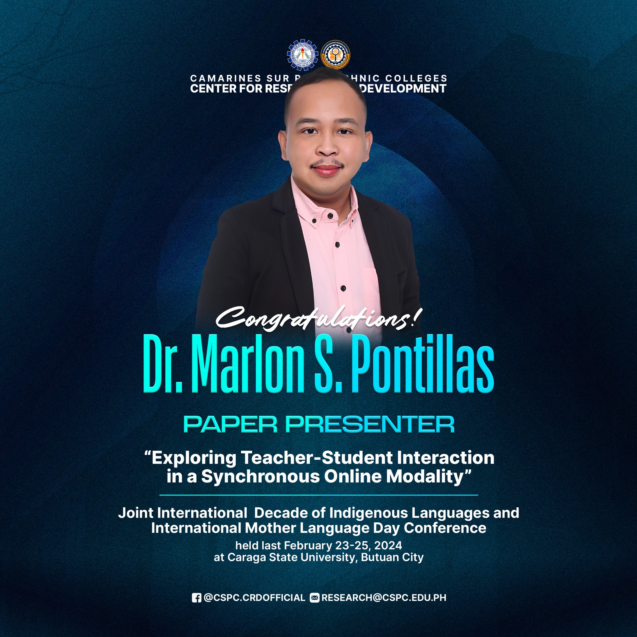 Congratulations, ๐๐ฟ. ๐ ๐ฎ๐ฟ๐น๐ผ๐ป ๐ฆ. ๐ฃ๐ผ๐ป๐๐ถ๐น๐น๐ฎ๐, author of the research titled โ๐๐ ๐ฝ๐น๐ผ๐ฟ๐ถ๐ป๐ด ๐ง๐ฒ๐ฎ๐ฐ๐ต๐ฒ๐ฟ-๐ฆ๐๐๐ฑ๐ฒ๐ป๐ ๐๐ป๐๐ฒ๐ฟ๐ฎ๐ฐ๐๐ถ๐ผ๐ป ๐ถ๐ป ๐ฎ ๐ฆ๐๐ป๐ฐ๐ต๐ฟ๐ผ๐ป๐ผ๐๐ ๐ข๐ป๐น๐ถ๐ป๐ฒ ๐ ๐ผ๐ฑ๐ฎ๐น๐ถ๐๐,โ and ๐๐ฟ. ๐ ๐ฎ๐ฟ๐ถ๐๐ฒ๐น ๐. ๐ฃ๐ฎ๐๐ฐ๐ฎ๐ป๐ฎ, author of the research titled โ๐ ๐ฃ๐ต๐ฒ๐ป๐ผ๐บ๐ฒ๐ป๐ผ๐น๐ผ๐ด๐ถ๐ฐ๐ฎ๐น ๐๐ป๐ฎ๐น๐๐๐ถ๐ ๐ผ๐ณ ๐ฃ๐ฒ๐ฑ๐ฎ๐ด๐ผ๐ด๐ถ๐ฐ๐ฎ๐น ๐ฃ๐ฟ๐ฎ๐ฐ๐๐ถ๐ฐ๐ฒ๐ ๐ฎ๐ป๐ฑ ๐ฆ๐ฝ๐ถ๐ฟ๐ถ๐๐๐ฎ๐น๐ถ๐๐ ๐ผ๐ณ ๐ง๐ฒ๐ฎ๐ฐ๐ต๐ฒ๐ฟ๐ ๐ถ๐ป ๐๐ต๐ฒ ๐๐ถ๐ฐ๐ผ๐น ๐ฅ๐ฒ๐ด๐ถ๐ผ๐ป,โ for presenting their groundbreaking study at the ๐ฎ๐ฌ๐ฎ๐ฐ ๐๐ผ๐ถ๐ป๐ ๐๐ป๐๐ฒ๐ฟ๐ป๐ฎ๐๐ถ๐ผ๐ป๐ฎ๐น ๐๐ฒ๐ฐ๐ฎ๐ฑ๐ฒ ๐ผ๐ณ ๐๐ป๐ฑ๐ถ๐ด๐ฒ๐ป๐ผ๐๐ ๐๐ฎ๐ป๐ด๐๐ฎ๐ด๐ฒ๐ ๐ฎ๐ป๐ฑ ๐๐ป๐๐ฒ๐ฟ๐ป๐ฎ๐๐ถ๐ผ๐ป๐ฎ๐น ๐ ๐ผ๐๐ต๐ฒ๐ฟ ๐๐ฎ๐ป๐ด๐๐ฎ๐ด๐ฒ ๐๐ฎ๐ ๐๐ผ๐ป๐ณ๐ฒ๐ฟ๐ฒ๐ป๐ฐ๐ฒ held on ๐๐ฒ๐ฏ๐ฟ๐๐ฎ๐ฟ๐ ๐ฎ๐ฏ-๐ฎ๐ฑ, ๐ฎ๐ฌ๐ฎ๐ฐ, hosted by ๐๐ฎ๐ฟ๐ฎ๐ด๐ฎ ๐ฆ๐๐ฎ๐๐ฒ ๐จ๐ป๐ถ๐๐ฒ๐ฟ๐๐ถ๐๐.