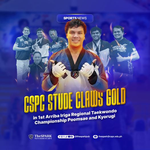 The CSPCeansโ greatness once again prevails in the battle arena as the third-year BPED student Rod Joshua Saberon snagged a gold medal in the lightweight division (advanced category) of the 1st Arriba Iriga Regional Taekwondo Championship Poomsae and Kyorugi held on April 6-7, 2024 at Iriga Sports Center.