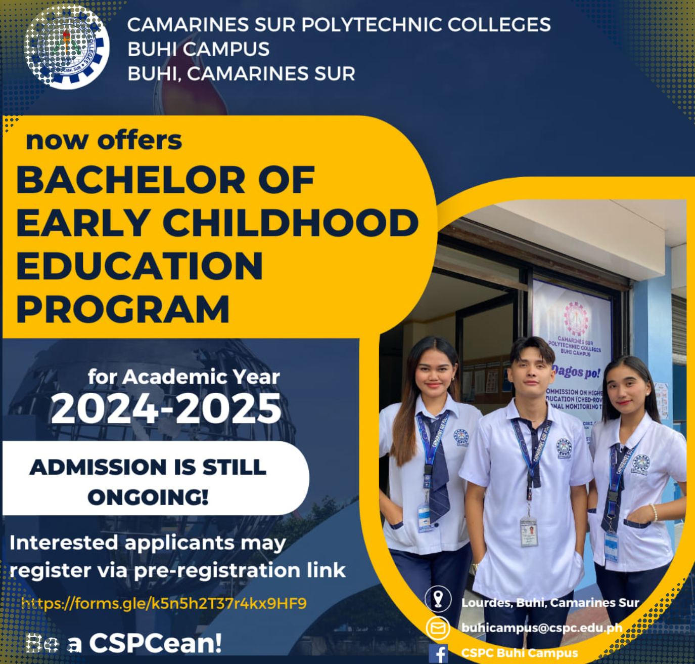 Camarines Sur Polytechnic Colleges Buhi Campus is now accepting admissions for the Bachelor of Early Childhood Education program for the Academic Year 2024-2025!