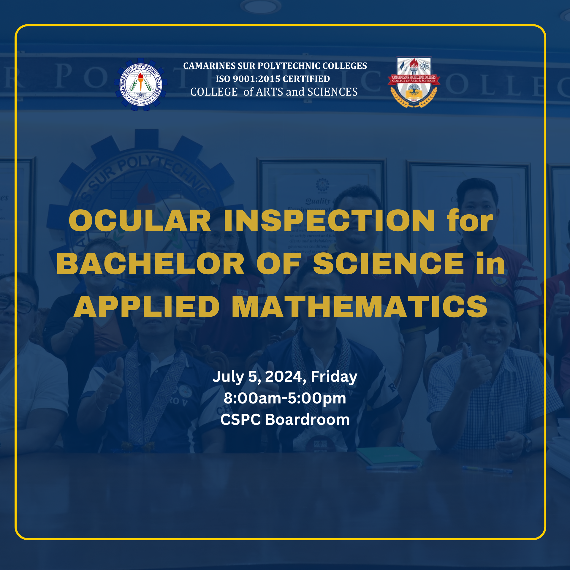 The inspection, led by CHED Education Supervisor Ms. Ma. Sharie A. Bailon and CHED RQAT Dr. Debbie A. Adriano, was part of the program application process for the Certificate of Program Compliance (COPC). Present during the evaluation were SUC President III Dr. Amado A. Oliva Jr., VPAA Dr. Estelito R. Clemente, CRQAMS Head Dr. Angelica...Read More