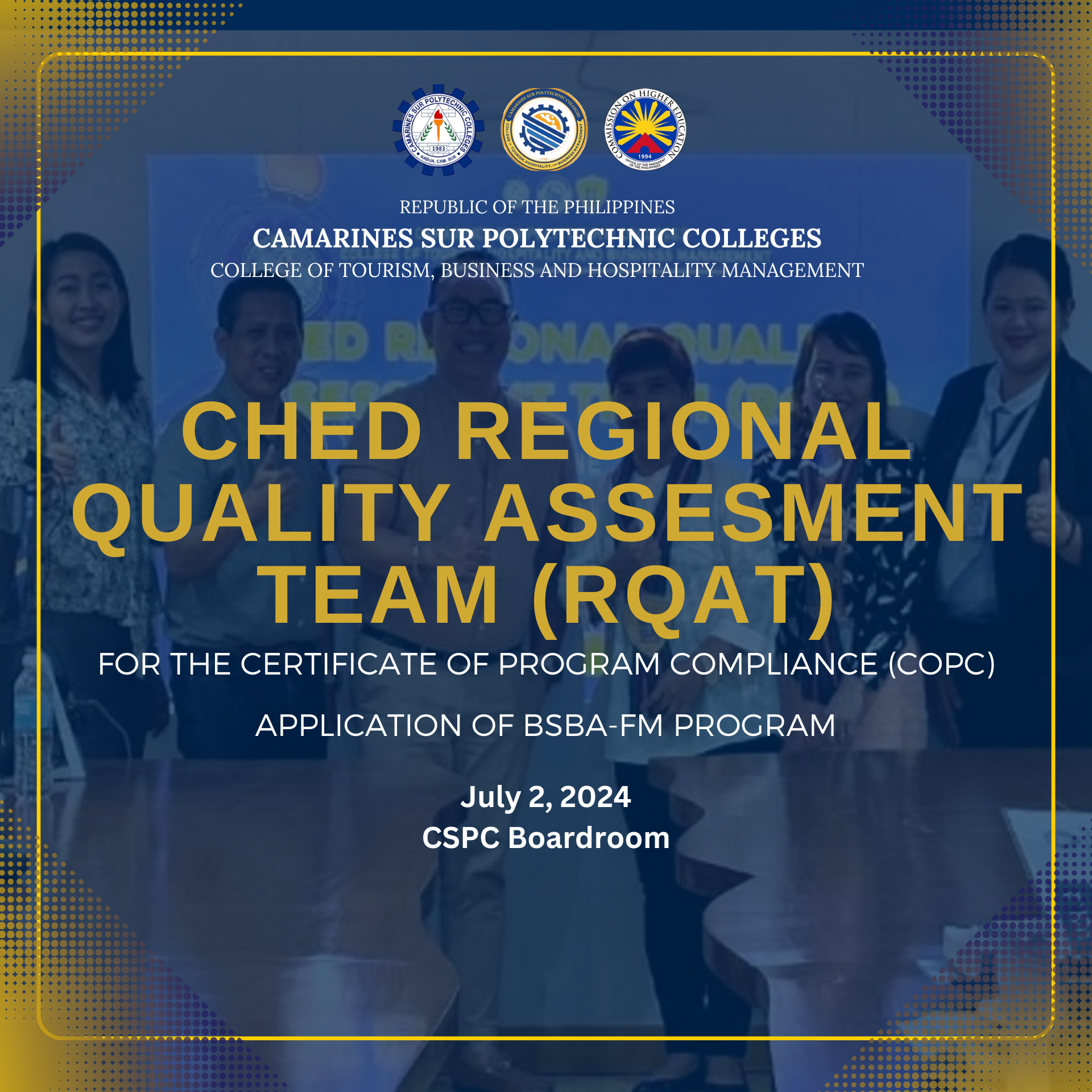 CHED RO V has granted CSPC’s Bachelor of Science in Business Administration Major in Financial Management (BSBA-FM) program a Certificate of Program Compliance (COPC). The COPC affirms the program’s quality and commitment to excellence in financial management education. Congratulations!Read More