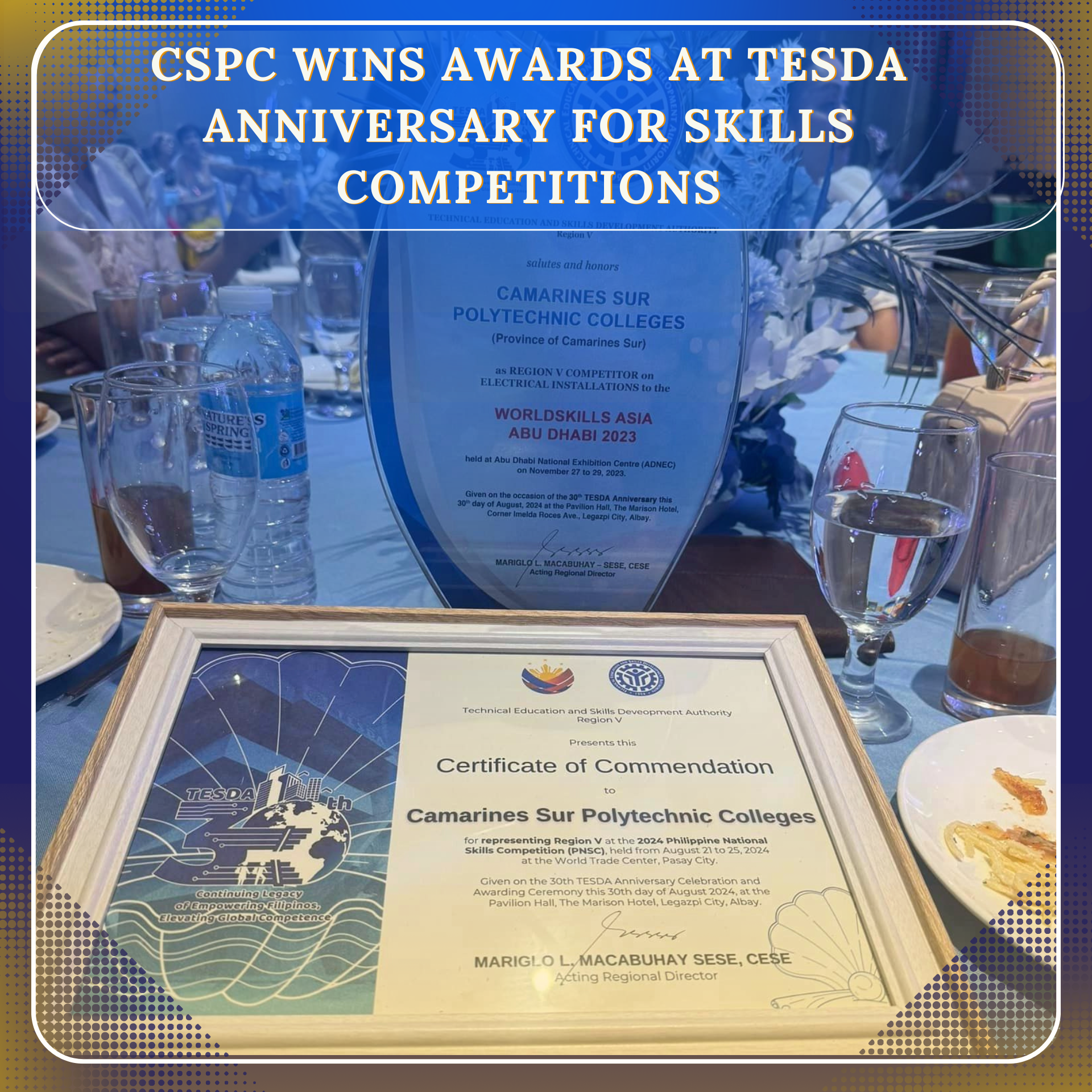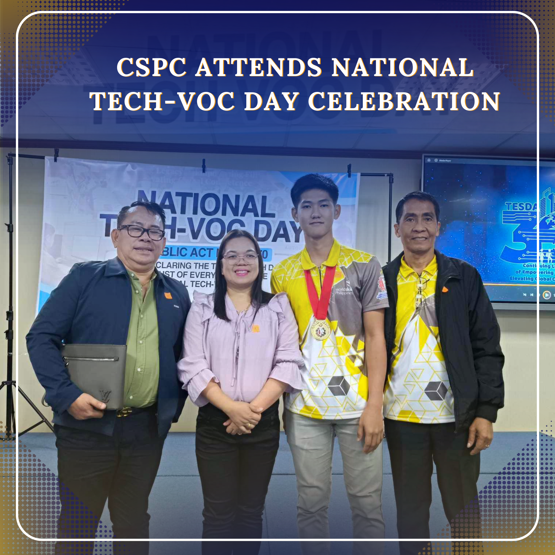 August 28, 2024 SUC President III Dr. Amado A. Oliva Jr. and VPAA Dr. Jocelyn O. Jintalan were joined by James Cavin T. Sayago, a CSPC – BSEE student who won the gold medal in the Electrical Installation category, along with his coach, Engr. Eddie L. Cabaltera, to represent the institution at this event.Read More