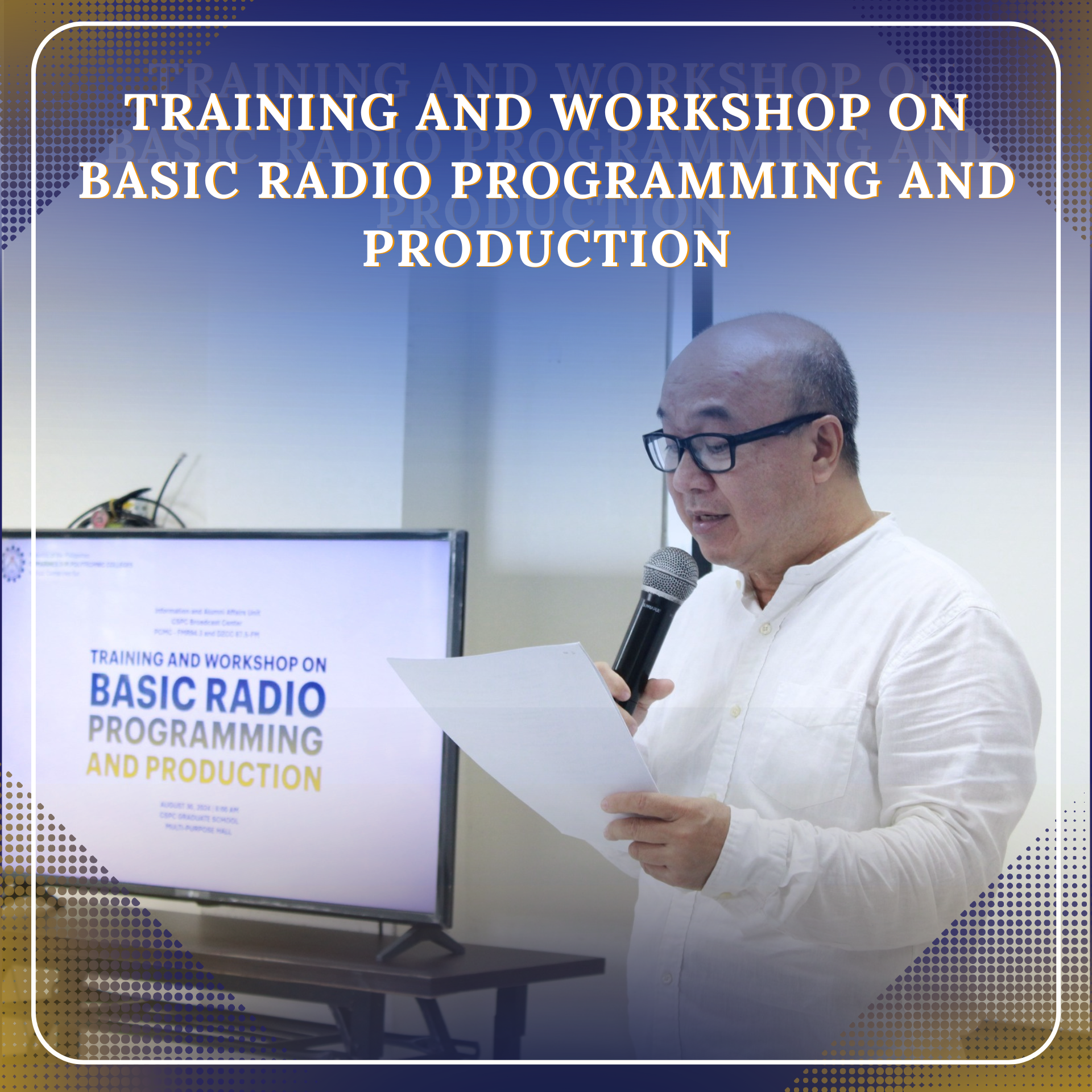 A training and workshop on Basic Radio Programming and Production, led by the CSPC Broadcast Center is currently taking place today, August 30, at CSPC Graduate School Multi-purpose Hall. With participants from various colleges, the training and workshop session covers three modules discussing a wide range of topics under fundamental radio programming and production. The...Read More