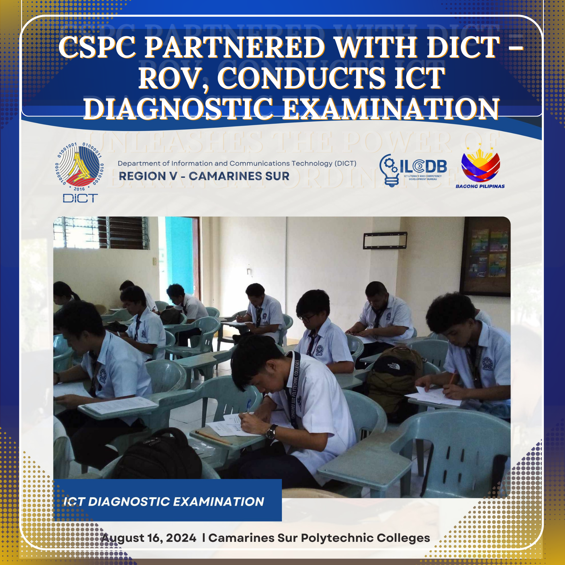 The 𝐃𝐞𝐩𝐚𝐫𝐭𝐦𝐞𝐧𝐭 𝐨𝐟 𝐈𝐧𝐟𝐨𝐫𝐦𝐚𝐭𝐢𝐨𝐧 𝐚𝐧𝐝 𝐂𝐨𝐦𝐦𝐮𝐧𝐢𝐜𝐚𝐭𝐢𝐨𝐧𝐬 𝐓𝐞𝐜𝐡𝐧𝐨𝐥𝐨𝐠𝐲 (𝐃𝐈𝐂𝐓) 𝐑𝐞𝐠𝐢𝐨𝐧 𝐕 – 𝐂𝐚𝐦𝐚𝐫𝐢𝐧𝐞𝐬 𝐒𝐮𝐫, in partnership with 𝐂𝐚𝐦𝐚𝐫𝐢𝐧𝐞𝐬 𝐒𝐮𝐫 𝐏𝐨𝐥𝐲𝐭𝐞𝐜𝐡𝐧𝐢𝐜 𝐂𝐨𝐥𝐥𝐞𝐠𝐞𝐬, brings the 𝐈𝐂𝐓 𝐃𝐢𝐚𝐠𝐧𝐨𝐬𝐭𝐢𝐜 𝐄𝐱𝐚𝐦𝐢𝐧𝐚𝐭𝐢𝐨𝐧 to CSPC last August 16, 2024. The event provided an opportunity for Graduating College Students specializing in ICT-related fields to assess their knowledge and skills, ensuring they are well-prepared for...Read More