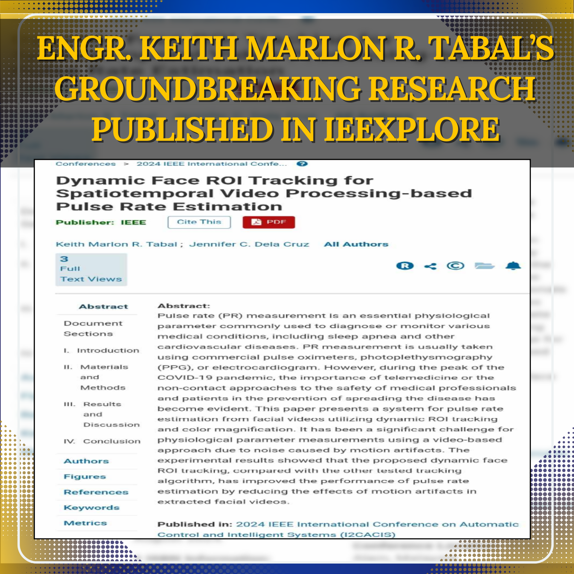 His research paper titled, “Dynamic Face ROI Tracking for Spatiotemporal Video processing-based Pulse Rate Estimation” has been published in IEEXplore, a scopus-indexed digital library for scientific and technical researched maintained by the Institute of Electrical and Electronics Engineers. Congratulations!Read More
