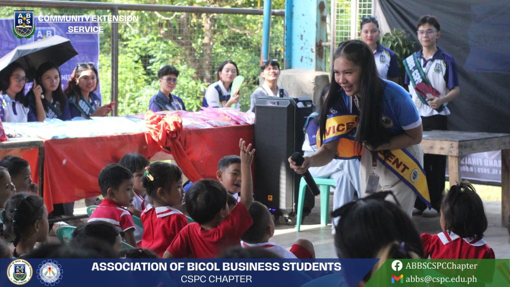 The Association of Bicol Business Students (ABBS) CSPC-CHAPTER, in collaboration with ABBS USANT and RMC-CHAPTER, successfully conducted a Community Extension Service titled โHealing Hearts for Young Learners in the Aftermath of Natural Calamitiesโ on March 15, 2025, in Palsong, Bula, Camarines Sur.