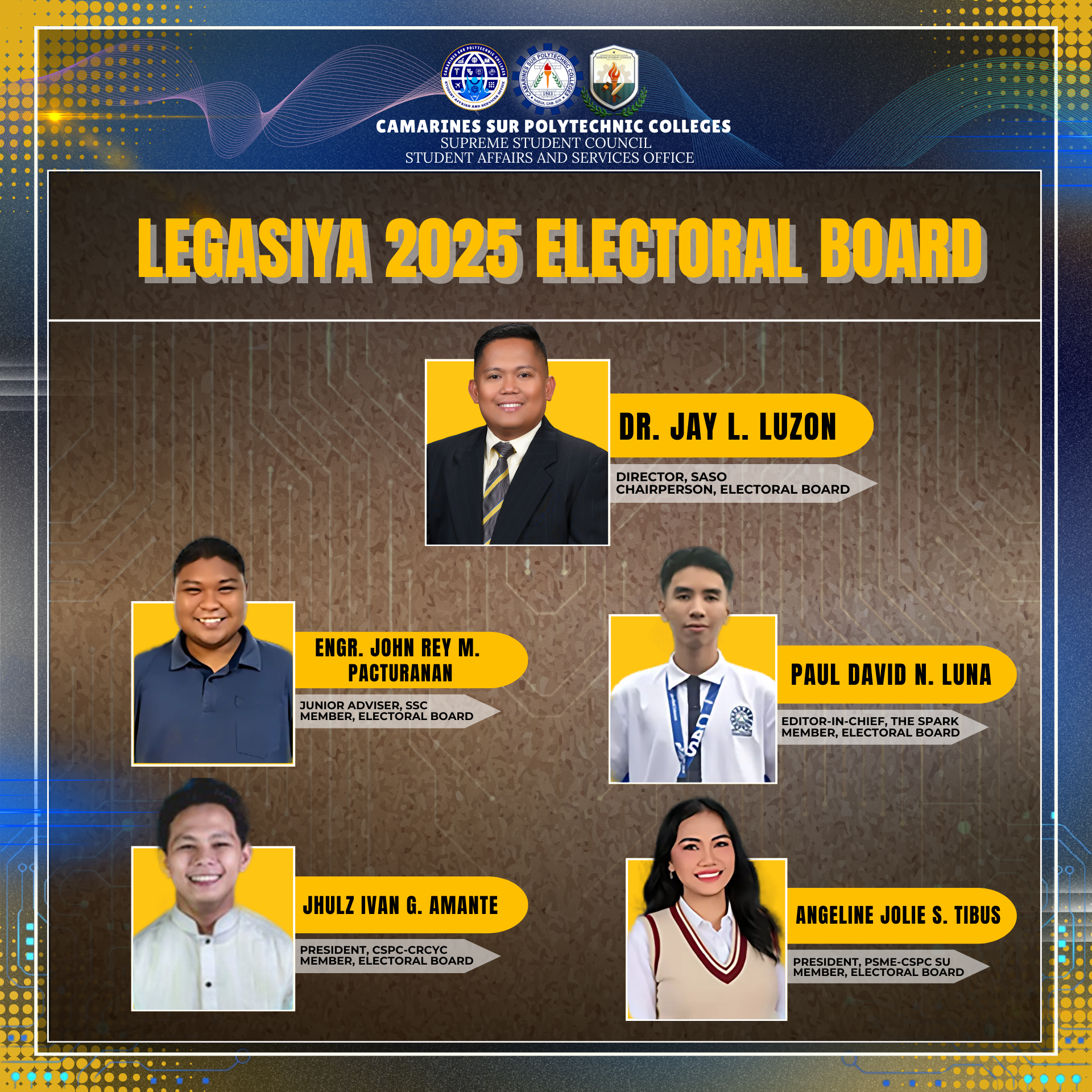 The faces behind the future. The minds behind the mission. The heart of this year’s democratic journey. Introducing the LEGASIYA 2025: CSPC-SSC Elections Electoral Board 2025 — a powerhouse of integrity, transparency, and student-driven vision. With eyes set on a fair, fearless, and forward-moving election season, these student leaders are here to uphold the spirit...Read More
