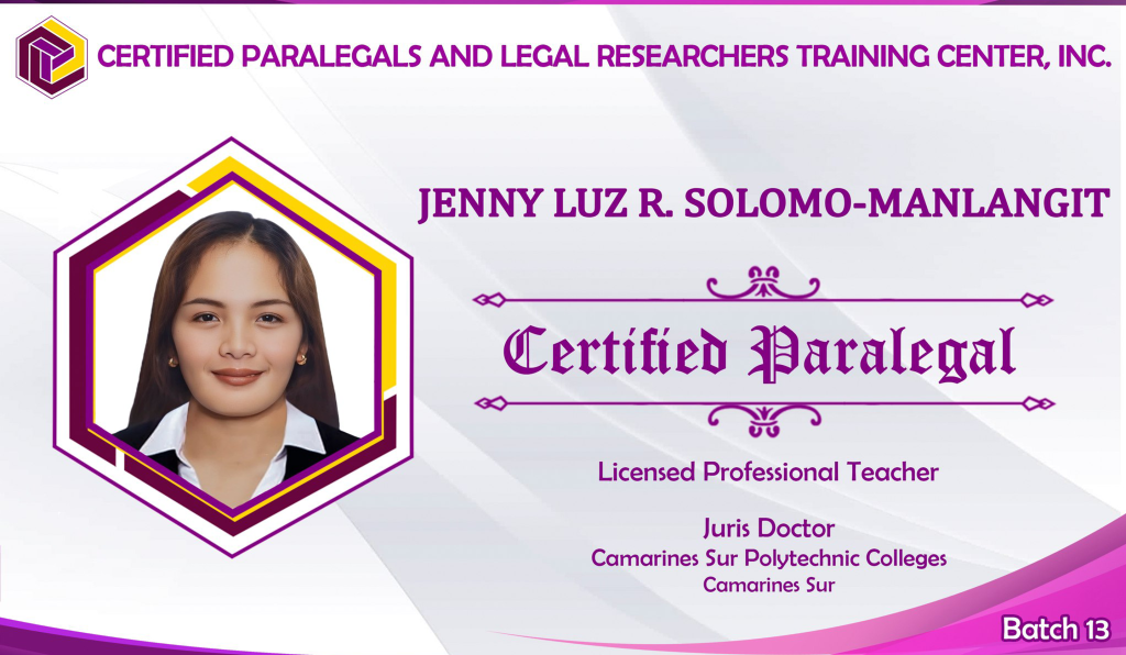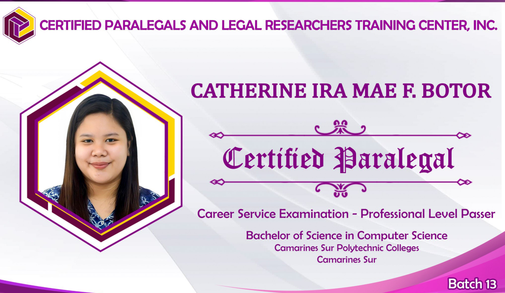 Congratulations to Ms. Catherine Ira Mae F. Botor and Ms. Jenny Luz R. Solomo-Manlangit of the CSPC Legal Affairs Unit for earning their Certified Paralegal titles under the Certified Paralegals and Legal Researchers Training Center, Inc.!