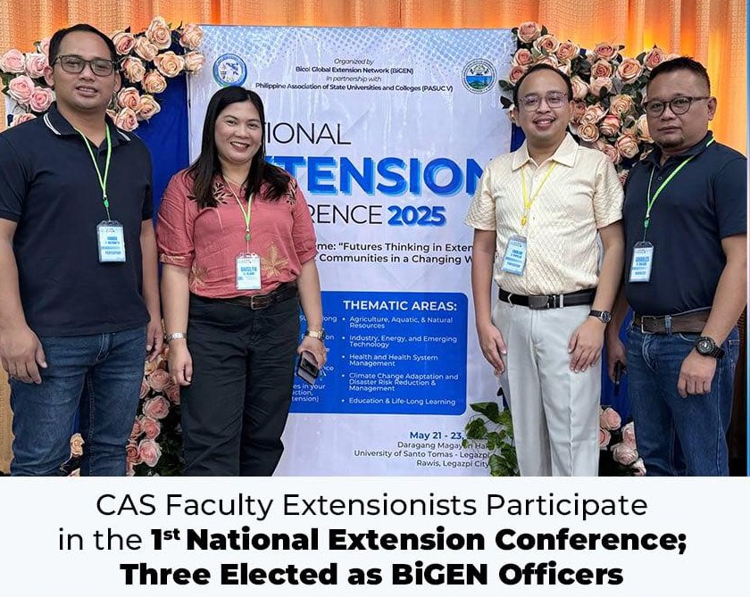 Faculty extensionists from the CSPC-College of Arts and Sciences actively took part in the 1st National Extension Conference held from May 21 to 23, 2025, at the Daragang Magayon Hall, University of Santo Tomas – Legazpi.