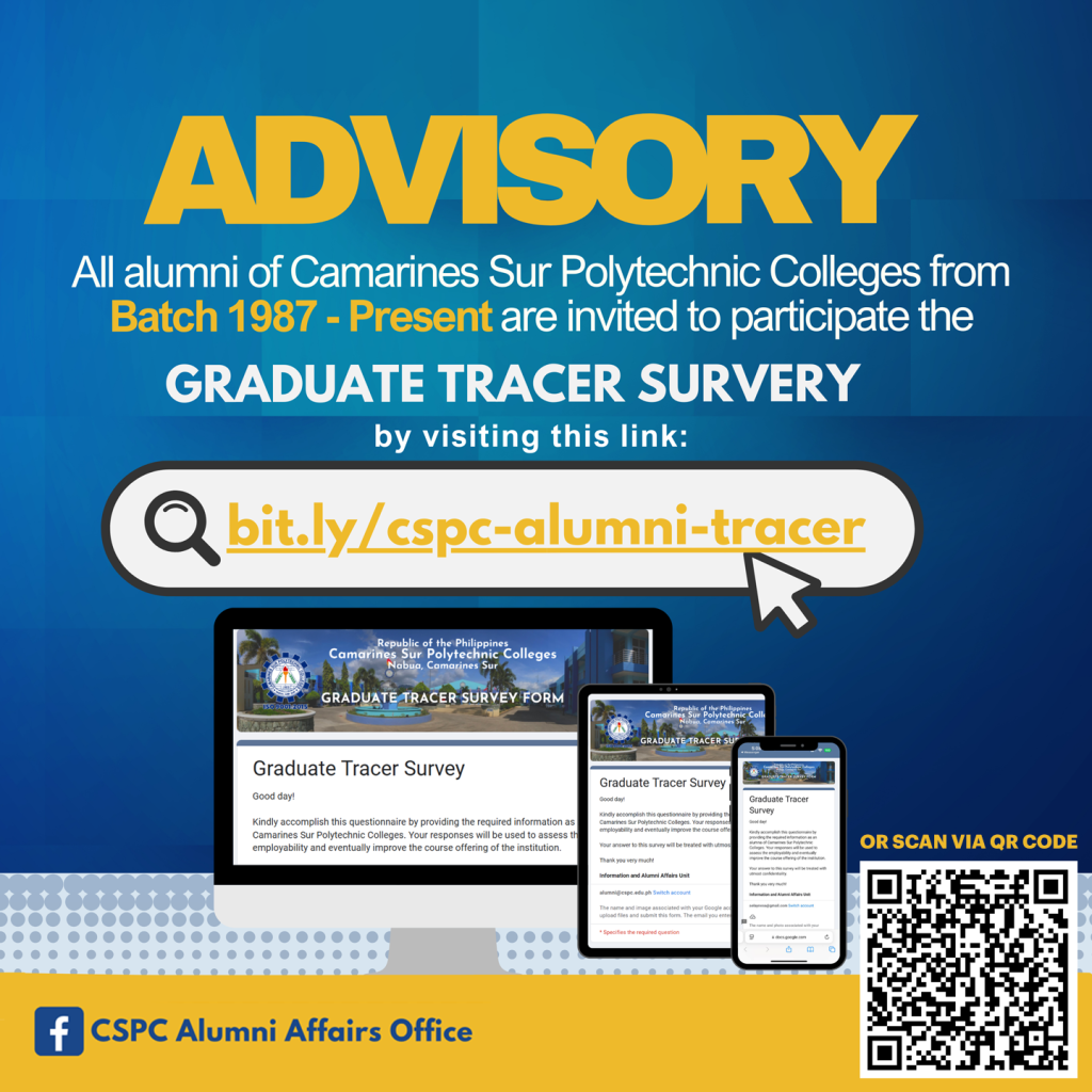 ๐ Please visit bit.ly/cspc-alumni-tracer to fill out the form.