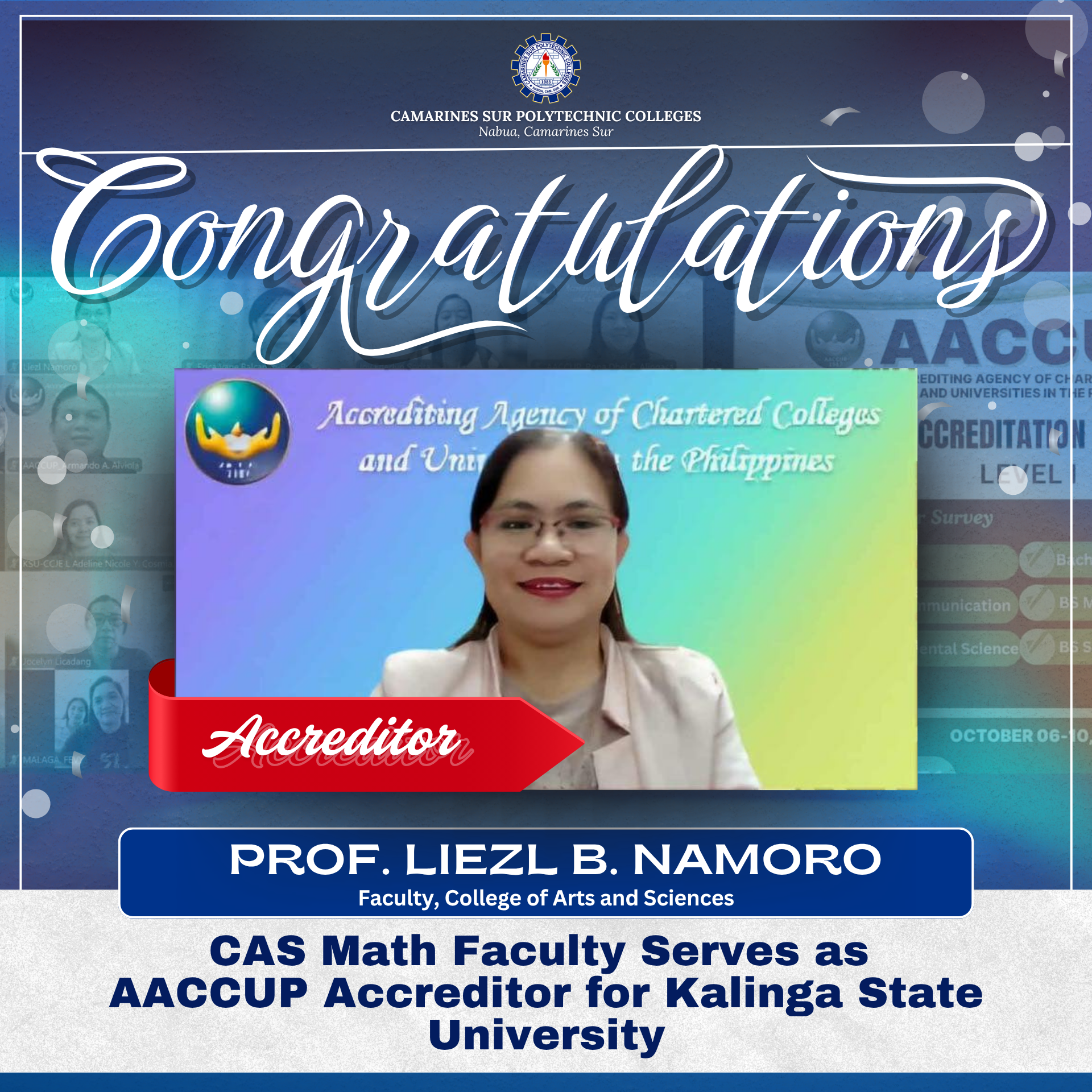 The College of Arts and Sciences (CAS) aims to produce well-rounded individuals who are well equipped with the necessary knowledge and skills in the arts and sciences and competent in their field of specialization so that they will become globally competitive professionals and leaders, and productive citizens of the country.