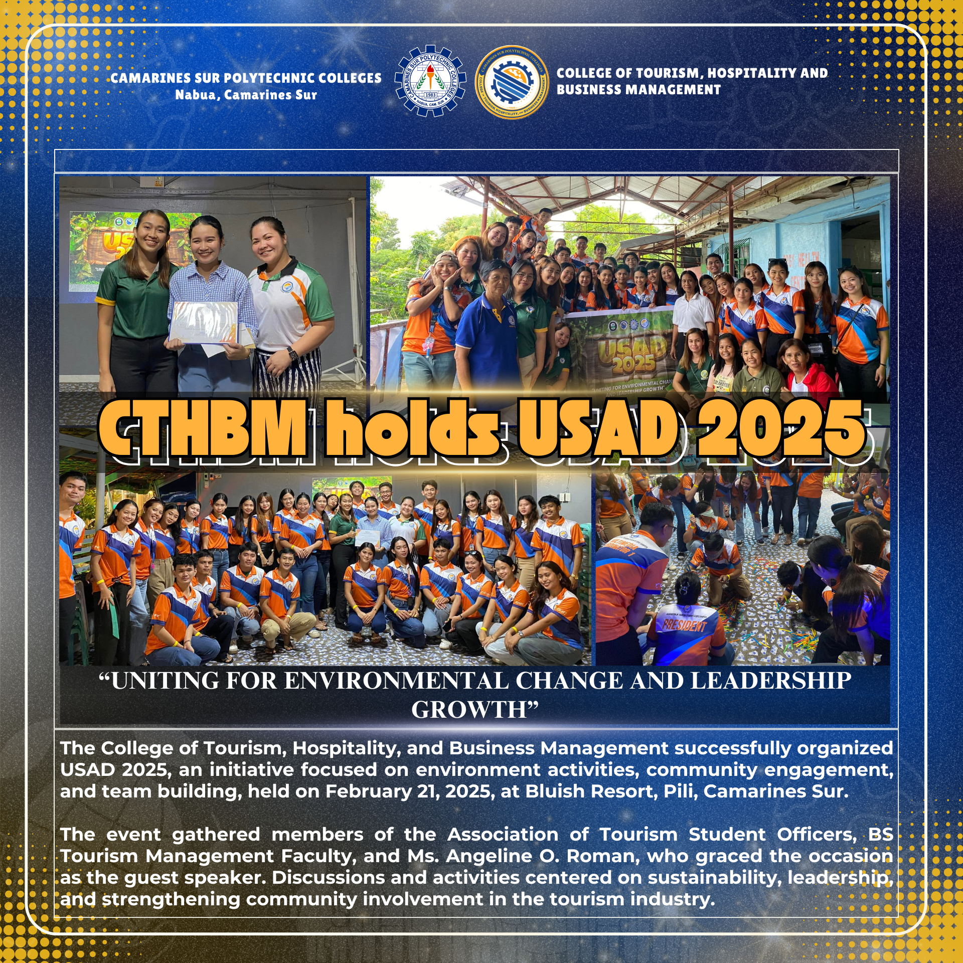 The College of Tourism, Hospitality and Business Management views itself as the primary producer of office administrator and food service managers, tourism, entrepreneurial, and financial managers geared towards the uplift of Region V and beyond in the 21st century.