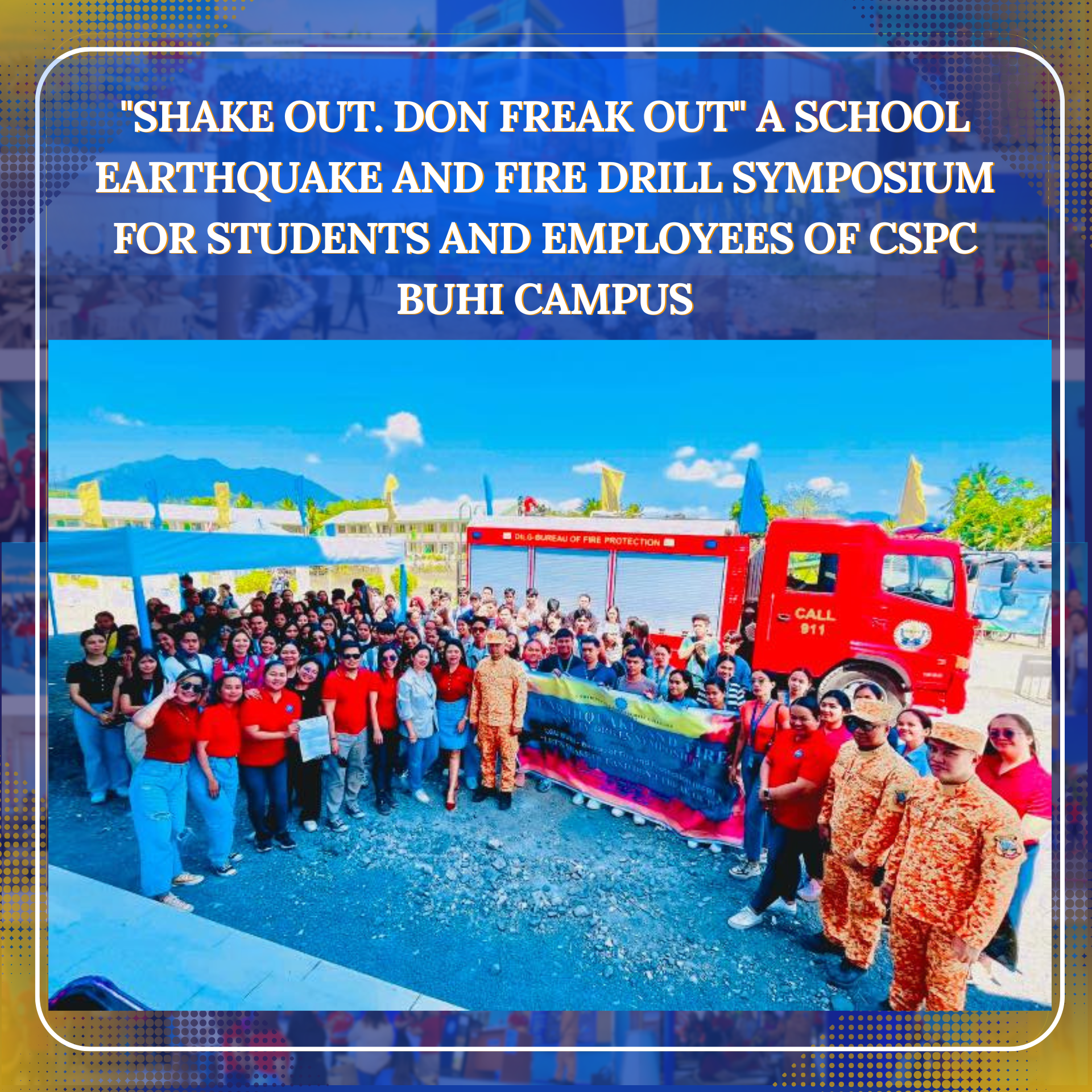 Shake out. Don’t freak out. CSPC Buhi Campus conducted its Fire and Earthquale Drill today, March 9, 2024 at the CSPC Buhi campus grounds. The Bureau of Fire Protection-Buhi shared insights and demonstrated how to effectively beat fire and other fire hazards. We thank Mam Sheela Mae Narra Bagacina, in partnership with Mam Lea Katrine...Read More