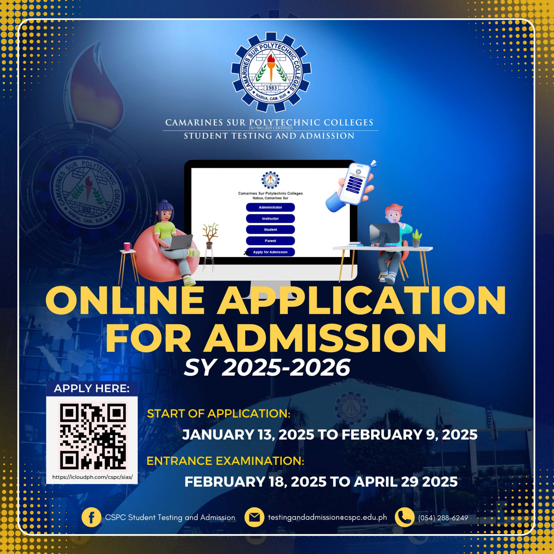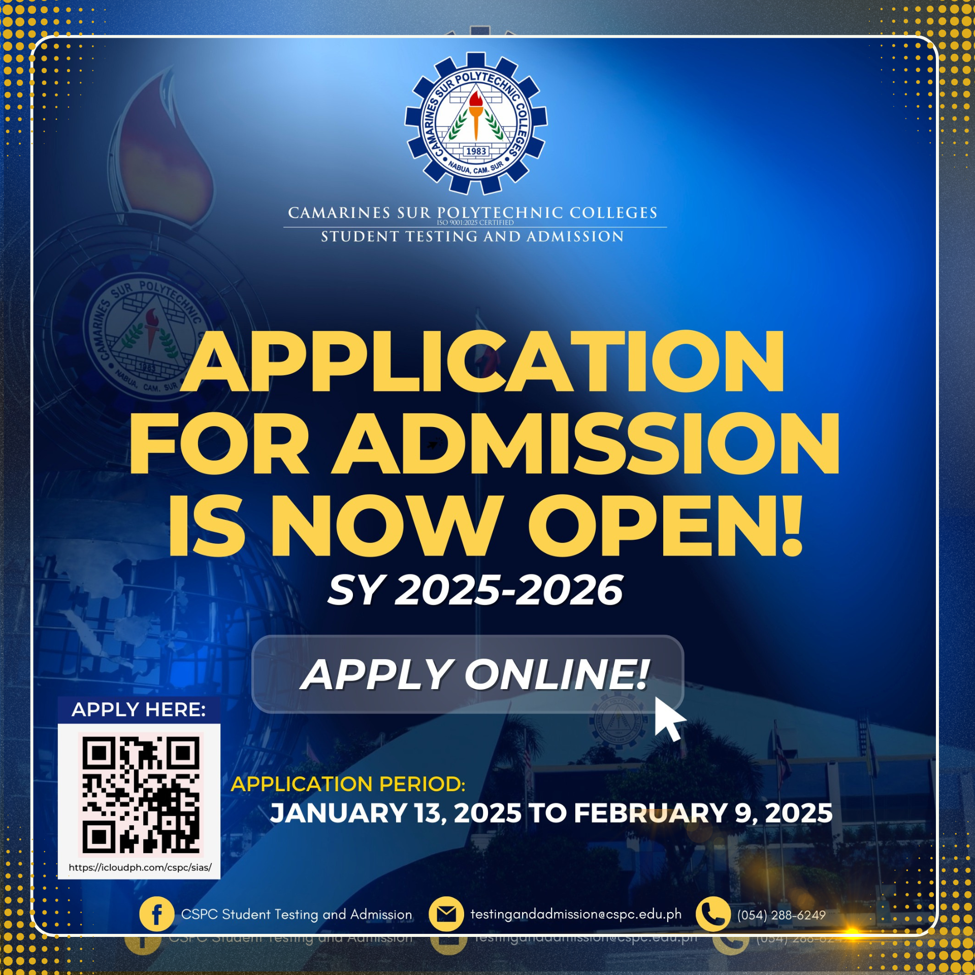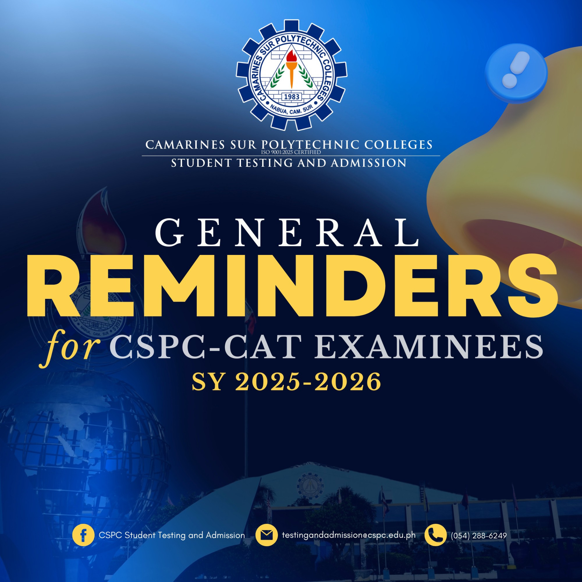 🗓️ June 17, 2025 The 𝗦𝘁𝘂𝗱𝗲𝗻𝘁 𝗧𝗲𝘀𝘁𝗶𝗻𝗴 𝗮𝗻𝗱 𝗔𝗱𝗺𝗶𝘀𝘀𝗶𝗼𝗻 𝗨𝗻𝗶𝘁 is pleased to announce the official results of the 𝗖𝗮𝗺𝗮𝗿𝗶𝗻𝗲𝘀 𝗦𝘂𝗿 𝗣𝗼𝗹𝘆𝘁𝗲𝗰𝗵𝗻𝗶𝗰 𝗖𝗼𝗹𝗹𝗲𝗴𝗲𝘀 – 𝗖𝗼𝗹𝗹𝗲𝗴𝗲 𝗔𝗱𝗺𝗶𝘀𝘀𝗶𝗼𝗻 𝗧𝗲𝘀𝘁 (𝗖𝗦𝗣𝗖-𝗖𝗔𝗧) for incoming first year and transferee students for 𝗔𝗰𝗮𝗱𝗲𝗺𝗶𝗰 𝗬𝗲𝗮𝗿 𝟮𝟬𝟮𝟱–𝟮𝟬𝟮𝟲. The List of 𝗤𝘂𝗮𝗹𝗶𝗳𝗶𝗲𝗱 𝗦𝘁𝘂𝗱𝗲𝗻𝘁-𝗔𝗽𝗽𝗹𝗶𝗰𝗮𝗻𝘁𝘀 under the seven colleges of Camarines Sur Polytechnic Colleges is now...Read More
