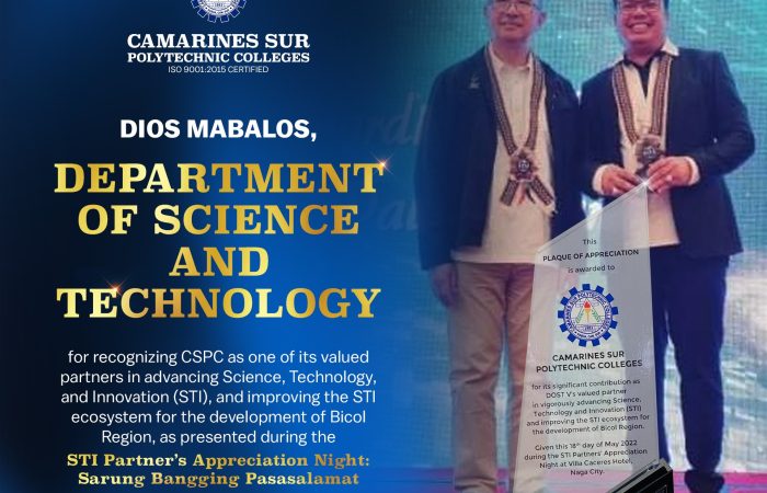 Camarines Sur Polytechnic Colleges extends its earnest gratitude to the Department of Science and Technology...